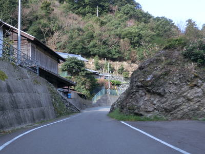 | 135.分断区間を繋ぐ徳島r253を走る | 136.「落石のおそれあり」「徳島A253 A001 徳島県」 | 137.左の急勾配の道路は民家に向かう道路 |