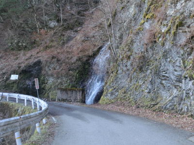 | 岳人の森から約1.2kmで氷生ヶ滝の前を通過する。国道に近接した滝で出会い滝に比べて発見しやすい。ただし、2ヶ所とも車を停車できるスペースがほとんどない。氷生ヶ滝以降は通行に支障はないものの落石が多くなり、路面には水が流れている箇所も複数ある。 | ||