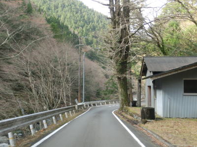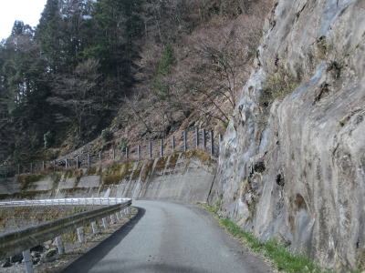 | 大釜隧道を出ると1.0車線の狭路を走り、右のヘアピンカーブを曲がって釜床谷川沿いを少し走った後に大又橋で沢谷川を渡る。大又橋以降は勾配がほぼ平坦になる。沢谷川の右岸を走っていると小剣神社や雲早神社の前を通過する。神社があるという事はかつて集落が存在したのだろうが、現在ではその痕跡を見つけるのは難しい。 | ||