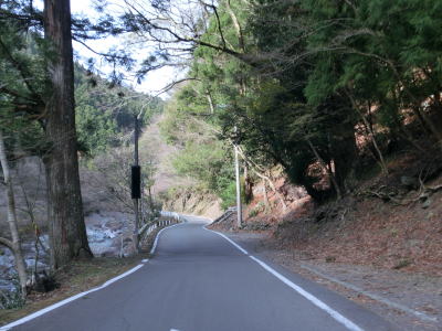 | 地蔵谷川に架かる地蔵谷橋を渡り、釜ヶ谷川から名称を変えた沢谷川に沿って南下する。カーブが多く見通しの悪い道路状況だが、交通量は非常に少ない。ただし、紅葉シーズンはそれなりの交通量が予想される。 | ||