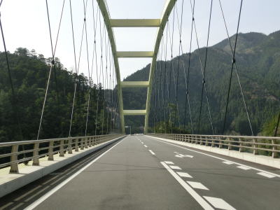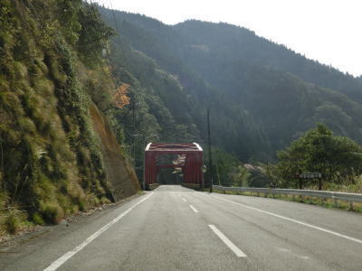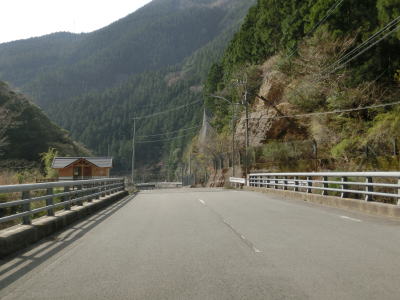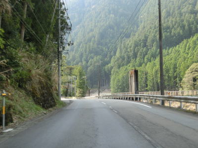 | 坂州木頭川に沿って走っていると人道用の吊橋の東詰を通過し、大きく左にカーブして進行方角を東に変える。徳島まで74km、旧上那賀まで10kmと案内されて言えるが、どちらもR193沿線ではなくR195を利用して行く場所である。 | ||