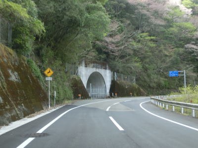 | 勾配もカーブも緩やかな快走路を走っていると下御所1号〜3号隧道、平谷隧道を相次いで通過する。これらのトンネルは出合トンネルとほぼ同時期に開通したものなので幅はやや狭くトンネル内部にセンターラインが引かれていない。4つとも距離が短いため交互通行規制は敷かれていない。 | ||