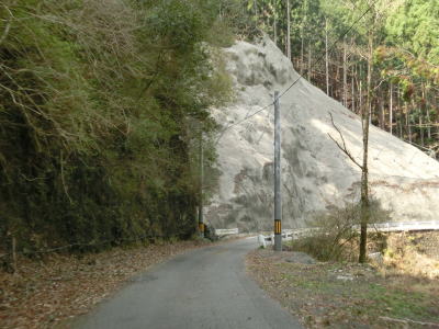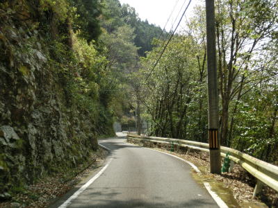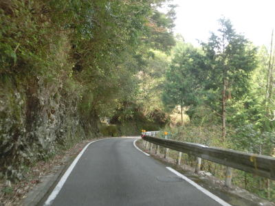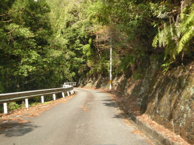| カーブの多い狭路をひたすら下って行く。勾配は緩やかだがカーブが多く辟易してしまうかもしれない。おにぎりは設置されている事は設置されているが、那賀町に比べると数は少ない。 | ||