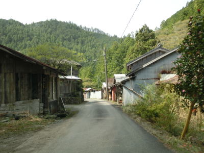 | 皆瀬谷川の谷筋を淡々と下っていると皆ノ瀬集落に入る。那賀町の上海川集落以来の集落で、両集落間の距離は約24km、町境からの距離は約11kmである。国道沿いに家屋が建ち並んでいるが規模は小さく、廃屋らしき建物のいくつか見られる。 | ||