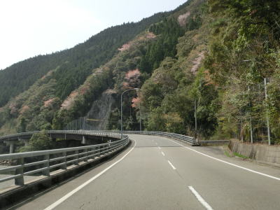 | 287.強風により桜の花が舞い散っている | 288.142KP先に玉笠林道の交差点がある | 289.山鳥大橋 |