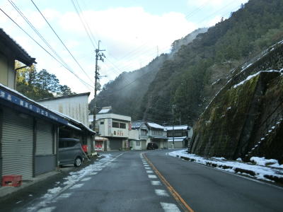 | 62.土居大橋 | 63.程野の滝(グリーンパーク)への入口 | 64.日当たりの悪い路面は雪が融け切っていない |