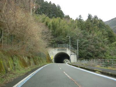 | 右にカーブしている皆又橋を渡った直後に皆又トンネルをくぐり、左カーブの先で名の谷トンネルをくぐる。名の谷トンネルの旧道は閉鎖はされていないが落葉が堆積しており廃道と化している。 | ||