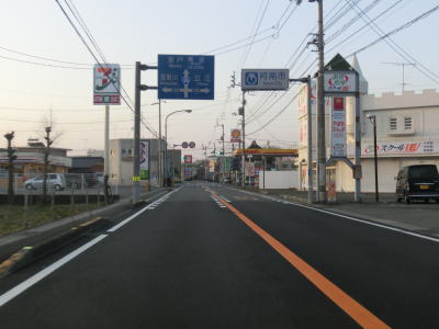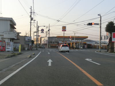 | 大林北交差点からはバイパスではなく現道となるため、対面2車線と道路状況が異なる。とは言え二桁国道との重複区間のためごく普通の2車線道路であって走りにくいと感じるような道路状況ではない。また、バイパスが開通しているものの幹線道路であり交通量は少なくない。約1.4km走ると市境を通過して阿南市に入り、直後に徳島r128・r136交差点を通過する。 阿南市に入ってからも対面2車線道路が続いており、これと言って酷道的な特徴は見当たらない。徳島r172との交差点を道なりに右にカーブして通過する。r172のルートを考えると旧道の可能性がある。 |