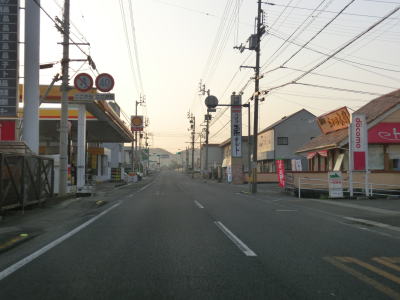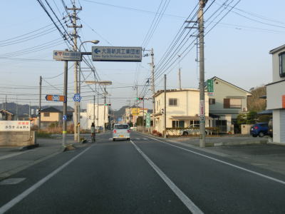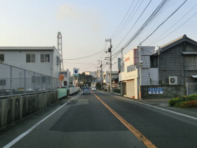 | 津乃峰町交差点を直進して引き続き現道を走る。四国電力の阿南火力発電所の前で右にカーブしながら勾配を下り、埋立地の内陸側を南西の方角に進む。埋立地に近いとは言え周辺には住宅が多く建っており、逆に海の近くという雰囲気は薄い。 | ||