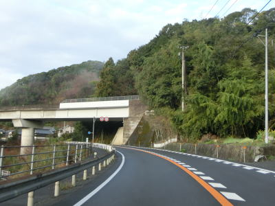 | 千々川の谷筋を下って行く。カーブが連続しているが緩やかなものが多いので走りにくさはさほど感じない。吾桑方面に向かう市道との交差点を通過するが、この市道は国道の旧道に当たる。旧道との交差点を過ぎてすぐに吾桑トンネルをくぐる。 | ||