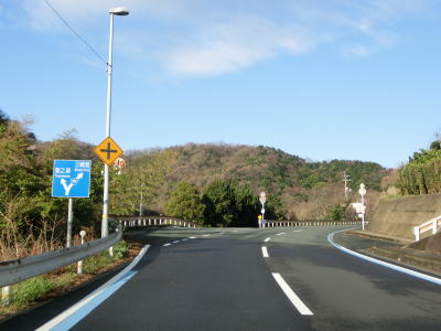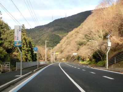 | 大久集落と高茂集落に至る町道との交差点を通過して大久東トンネルをくぐり、以降は緩やかな下り勾配となり、大久集落の北西で大久トンネルをくぐる。カーブしている箇所が多いが緩やかなものばかりなので走りにくさは一切感じない。 | ||