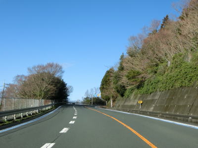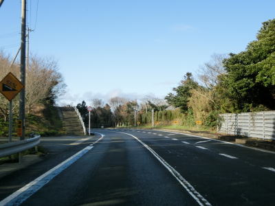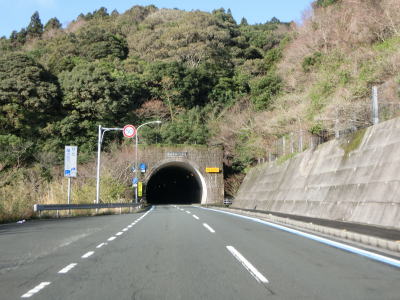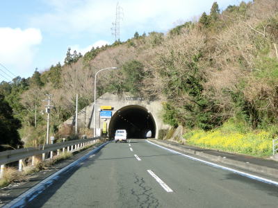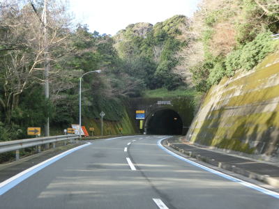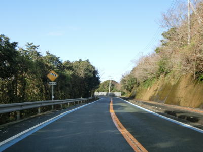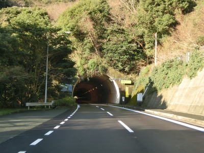 | 名取トンネルを出るとごく緩やかな下り勾配の2車線道路を走る。複数の橋を渡って右にカーブして二名津トンネルをくぐり、左の急カーブを曲がってから三崎トンネルをくぐる。 | ||