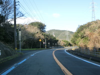 | 緩やかなカーブを繰り返す2車線道路を快走する。樹木の間から宇和海を望める場所もあり眺望も良好である。伊方町風力発電所があり、風車の数は2基と少ないが、間に二見くるりん風の丘パークという公衆トイレが設置された駐車場が設けられている。パークの出入口の道路との交差点から5.5%の下り勾配が始まる。上りとなる反対側の車線には登坂車線が設置されており、その延長は約1.0kmである。 | ||