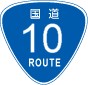 九州の東側を通る国道で大動脈のひとつ。東に位置する大分県と宮崎県の県庁所在地を通っている。ほぼ全線にわたってE10東九州道とJR日豊本線が並走している。E10東九州道の一部及びそれに接続するバイパスもR10の指定を受けている。 |