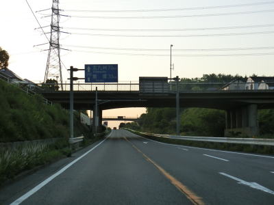 | 福岡県筑紫野市の南部、佐賀県との県境に近いR3・R386原田交差点がR200の終点である。R386はR200に重複しており、この交差点が終点である。立体交差化されており、R3の筑紫野高架橋が交差点の上を通過している。 原田交差点からは造成された住宅地の間の掘割の中を対面2車線道路で上る。南側には拡幅用地と思われる空き地があり、片側2車線で設計されているものと思われる。走り始めたばかりだが早くも北九州市まで70kmという標識が確認できる。R200の延長よりも長い距離だが、R200の起点と北九州市役所が離れているためだろう。 |