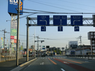| 13.「北九州67km 飯塚27km」 | 14.再び筑紫野市に入る | 15.筑前山家駅の前を通る |
