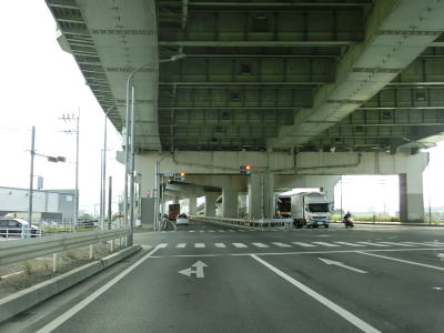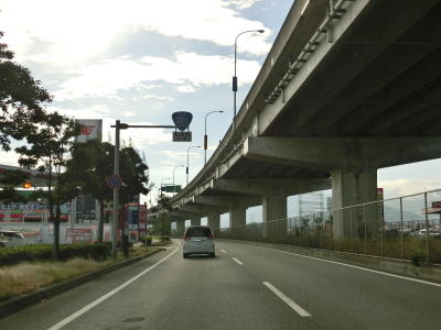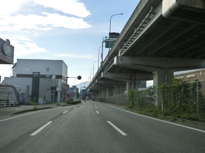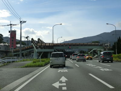 | 山陽新幹線の高架橋をくぐる箇所があるが、その前後は並走している福岡都市高速も高架橋から平面道路になっている。徐々に高くなって高架橋に戻る所で粕屋町に入り、福岡都市高速に分離された片側2車線道路が続く。緩やかな左カーブを曲がるJR香椎線と交差するが、こちらは鉄道の上を道路が通っている。直後に東大川橋で多々良川を渡るが福岡r24の上も通っている。 | ||