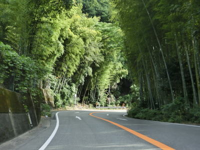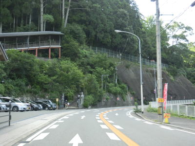| 八木山峠を越えてからはやや急な勾配を下る。大きく右にカーブした後に2つの左のヘアピンカーブを曲がる。1つ目のヘアピンカーブの直後と2つ目のヘアピンカーブの内側に駐車場があり、前者には公衆トイレも設置されており後者は眺望が良い。その後も急カーブの多い下り勾配の2車線道路を走る。。 | ||