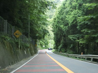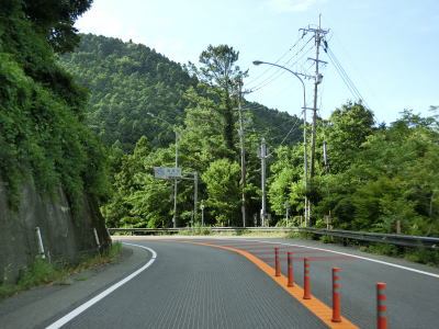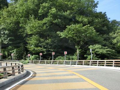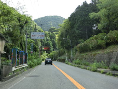 | 福岡r450交差点のすぐ傍に閉鎖用ゲートが設置されており、そこから2.4kmは雨量通行規制区間である。集落が途切れた直後に下りに転ずるが、そこが八木山峠である。集落に近いせいもあって有料道路が造られた峠にしてはあまりにも容易に到達できたように感じられる。 | ||