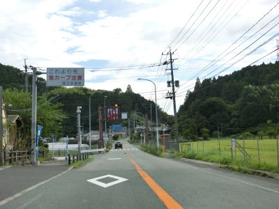 | 緩やかな勾配を下っていると集落に差し掛かり、雨量通行規制区間の終点を示す標識を通過するが、その手前にも家屋が建っている。閉鎖用ゲートが設置されているのはさらに東側である。標高は200mを超えているが、勾配もカーブも緩やかで走りやすい道路状況である。八木山峠バイパスが有料だった頃はもっと交通量が多かったと思われる。4車線化されて再び有料になった際に交通量の変化はどれほどになるのかが気になるところである。 | ||