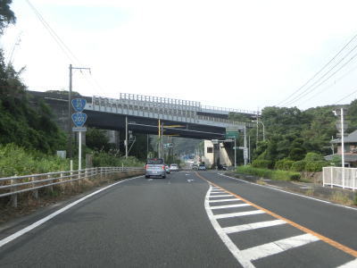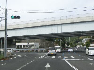 | 針尾送信所の真東で高畑橋を渡るが、その下にあるのは河川ではなくR202西海パールラインである。高畑橋を渡った先で西海パールラインとの針尾ICを通過する。この区間は有料道路のためランプ及び本線に料金所が設置されている。 | ||