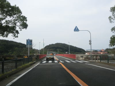 | 針尾ICのすぐ先の市道との交差点は針尾送信所の出入口に当たる交差点である。観潮橋を渡って以降は針尾島という島の中を走っているが、複数の橋が架けられているため島を走っているという印象はほとんど感じない。 | ||
