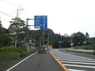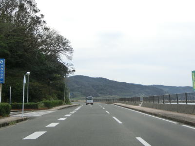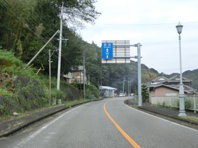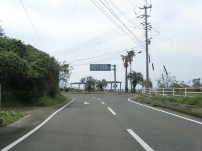 | 砥石崎いこいの広場からは急カーブが多くなる。出津橋を渡ってから程なくして直角に近い右カーブを曲がる。急カーブが連続する上り勾配の2車線道路を走っていると道の駅「夕陽が丘そとめ」を通過する。道の駅の前のカーブを曲がり終える所に山の上に延びる階段があるが、そこを進むと展望台に行く事ができる。道の駅を過ぎると下り勾配が続き、海岸線を離れて内陸に向かった後に黒崎川沿いを走って海面近くまで標高を下げる。しばらく海沿いを走った後に左にカーブして海から離れる。 | ||