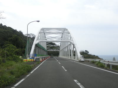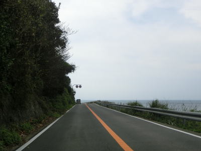 | 海に近い標高5,60mあたりを走っているため眺望は非常に良い。ながさきサンセットロードと名乗っているだけの事はある。急な斜面を流れる名もなき沢をいくつも渡っているが、そのうちの荒川橋と四谷河内橋はトラス橋だが、その他は桁橋でありあまり目立たない。左の急カーブの海側に砥石崎いこいの広場があるが、駐車場は旧道沿いにあるためカーブの手前で旧道に入る必要がある。 | ||