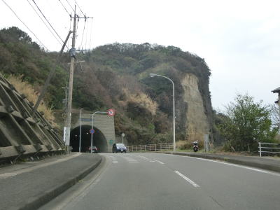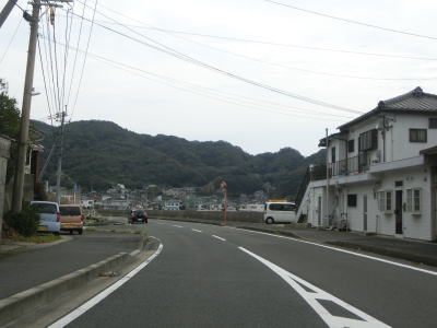 | 212.前方の山に採石場がある | 213.ヘアピンカーブに市道が交差 | 214.海が近いとは思えない風景 |