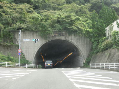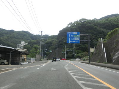 | 蝶ヶ崎トンネルを出ると海沿いを走りながら緩やかな勾配を下る。新手熊橋を渡った先で長崎r112と思われる道路との交差点を通過する。現地に案内標識やソトバではっきりとr112と分かるものはないが、ウオッちずでは県道として扱われており、支線のような道路と思われる。r112支線との交差点を過ぎて少し走ると海岸線から離れて上り勾配の2車線道路を走る。ウオッちずでは現役扱いされている旧道との交差点を過ぎて大きく左にカーブして小江小浦トンネルをくぐる。旧道の出入口は閉鎖されていないようだったが、通り抜けられる否かは不明である。 | ||