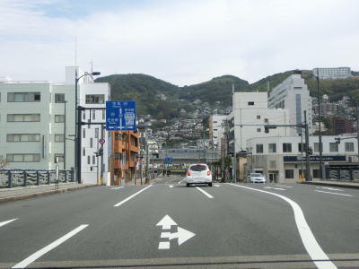 | 飽の浦交差点からは車線が増えて4車線道路になる。大きな工場の前で左にカーブした後に右の直角カーブを曲がる。カーブは急だが4車線道路のため走りにくさは感じない。長崎湾越しにも市街地が見え、長崎駅や長崎県庁、市役所は湾の東側にある。 | ||