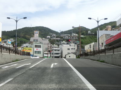 | 221.4車線道路 | 222.市街地内にもかかわらず急カーブが多い | 223.長崎湾越しに中心部が見える |