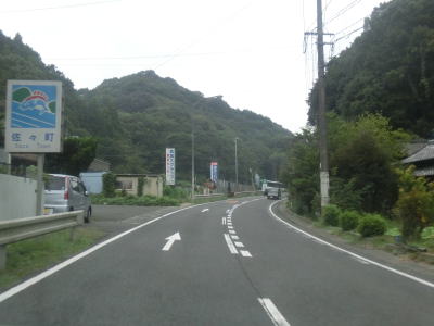 | 本山トンネルを出てからは非常に緩やかな勾配を下る。交通量はだいぶ少なくなっており走りやすい。R497西九州道の真申川橋の下を通過して左カーブを曲がっていると佐々町に入る。市町境を越えてからも上り勾配が続くが、程なくして下りに転ずる。谷筋から出た所でR497西九州道の口石大橋の下を通過する。2016年10月時点では西九州道は佐々ICまでしか供用されていない。 | ||