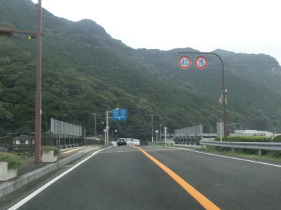 | 長崎r11下本山交差点で左側車線が左折車線にあり、交差点を過ぎると対面2車線になる。左折してr11を少し走るとR497西九州道の相浦中里ICがある。2車線道路を右にカーブしながら勾配を上って松浦鉄道をオーバーパスした後に本山トンネルをくぐる。 | ||
