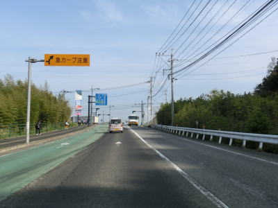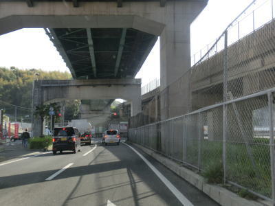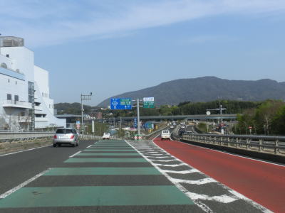 | 江上交差点を通過してからも片側1車線状態が続くが、程なくして片側2車線状態になる。笹ノ谷橋からは勾配が落ち着いて平坦になる。小規模な工業団地(?)前には平面の交差点があるが信号機は設置されていない。 | ||