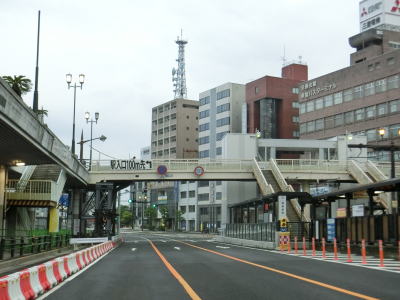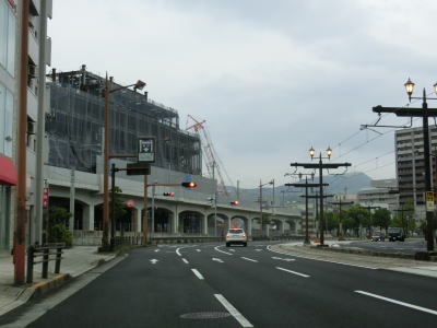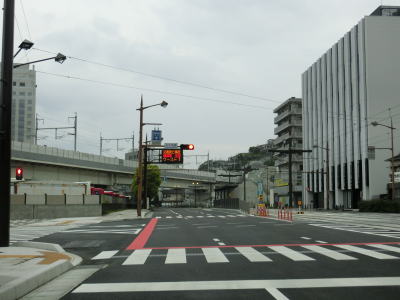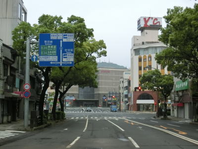 | 旭大橋東詰交差点のすぐ先で市道との長崎駅前交差点を左にカーブしながら通過して長崎駅の東側を通過する。東口の駅前ロータリーの出口交差点付近でS字状にカーブし、少し走ると西九州新幹線の高架をくぐる。西九州新幹線は2022年9月23日に開業した新しい新幹線である。 | ||