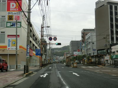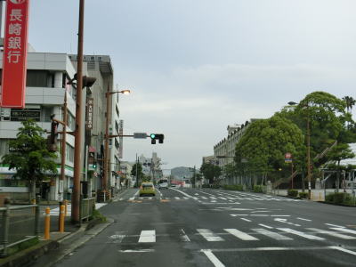 | 1.R34・R57・R202・R251・R324江戸町交差点 | 2.4車線道路を下る | 3.R202・R499・長崎r112大波止交差点を右折 |