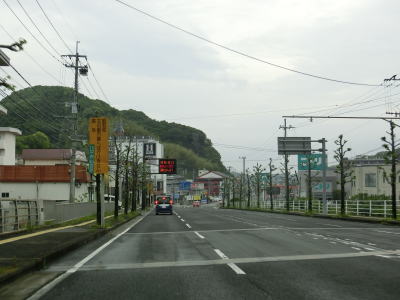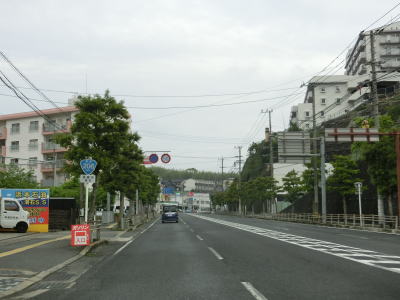 | バイオパーク入口交差点を過ぎると旧西彼町の行政機関が集中している場所を通るが、一般の家屋はなくごちゃごちゃした雰囲気は一切感じない。喰場橋を渡って緩やかな右カーブを曲がって平坦な直線道路を走る。大きな鳥居が目立っているが、某宗教施設のもので特別な由来のある歴史的なものではない。 | ||