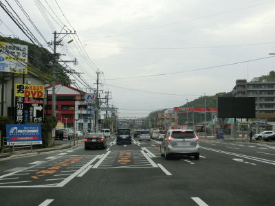 | 38.右側車線が減少 | 39.対面2車線道路を下る | 40.長崎方面の市道と交差点 |