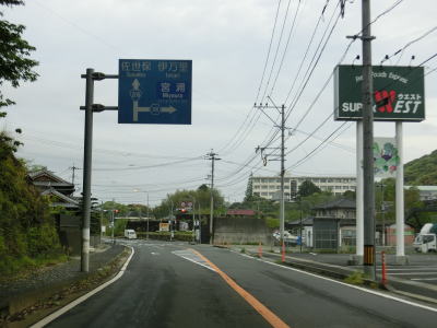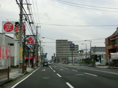 | 時津町交差点の直後に左カーブを曲がって時津橋を渡る。カーブが連続しているが緩やかなものばかりなので走りにくさは感じない。時津町の中心部からは離れて行くものの多くの商業施設がある。 | ||