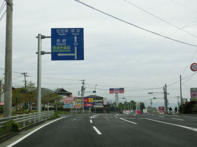 | 長崎オランダ村付近からは車線が増えて4車線道路になって緩やかな勾配を上る。オランダ村の西に西海市役所西彼総合支所があるが、オランダ村の建物の一部を間借り(?)しているようで役所の建物にもかかわらず風車が付いている。総合支所を通り過ぎると下り勾配となるが、再び上り勾配となり再度下っていると左側車線が減少する。 | ||