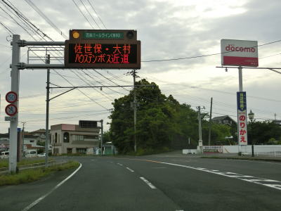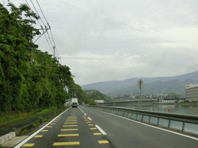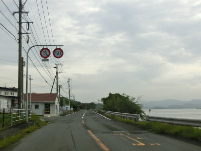 | 概ね大村湾に沿った2車線道路を淡々と走る。湾の向こう側の東彼杵町や川棚町だけではなく離島も目に入る。大半の島は無人島だが、その中の長島はハウステンボスが購入してアトラクションが造られている。 | ||