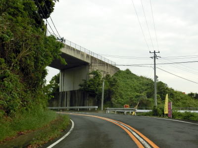 | 佐世保市に入ってからもアップダウンとカーブを繰り返す2車線道路が続く。R202西彼杵道路(西海パールライン)が並走しているとは言え有料のせいか現道の交通量も少なくない。針尾送信所に至る市道との交差点から緩やかに下っているとR202西彼杵道路(西海パールライン)との針尾ICを通過する。このインターチェンジと本線に料金所が設置されている。 | ||
