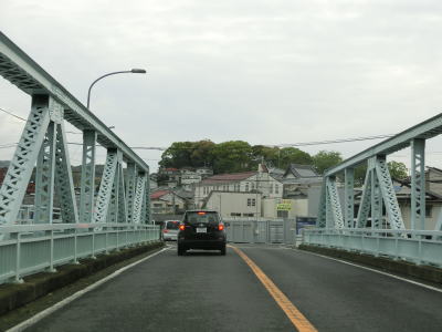 | 大きく左にカーブしてから右カーブを曲がって西海橋公園の前を通って西海橋を渡る。下にあるのは河川ではなく大村湾と外海を繋ぐ海峡のひとつ、針尾瀬戸である。針尾瀬戸は市境でもあり、北側は佐世保市で、西海橋公園も設置されている。R202西彼杵道路(西海パールライン)の新西海橋が西側に架かっており、その南北にも公園が設置されている。 | ||