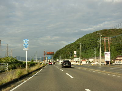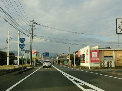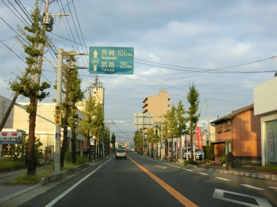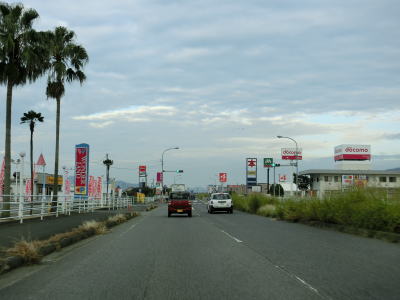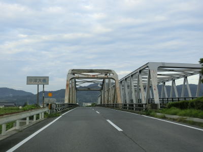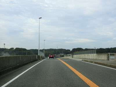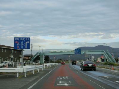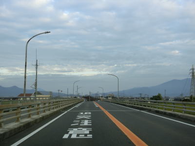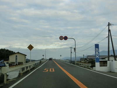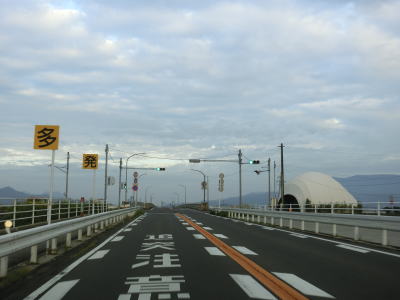 | 東分交差点からは対面2車線道路と車線の数は減るが、平坦かつ直線的という状況に変化はない。交通量も幾分かは減っているせいもあって走りにくさはさほど感じない。旧道との交差点の先で左にカーブしながら緩やかな勾配を上って六角橋を渡ると白石町に入る。六角橋を渡り終えて少し走ると佐賀r36大戸交差点を通過する。 | ||