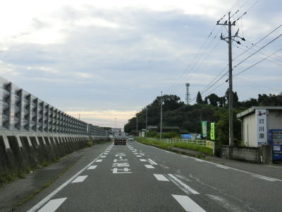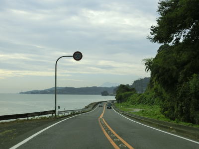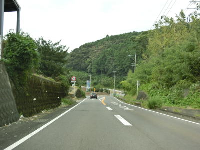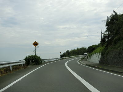 | 海岸線沿いを走っていると亀崎の根元で陣ノ内亀崎駐車場を通過する。区画線が引かれていない駐車帯ながら公衆トイレが設置されている。有明海とJR長崎本線に挟まれた狭い平地を走っており多少のアップダウンとカーブはあるものの概ね走りやすい道路状況である。 | ||
