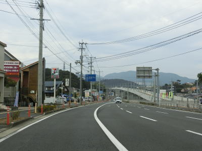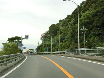 | 波瀬ノ浦橋を渡るが、これは小さな湾に架けられたもので下は河川ではなく海である。橋を渡ってからも緩やかなアップダウンとカーブの連続する2車線道路を走り、里集落で8%の急勾配を上る。 | ||