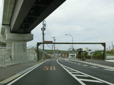 | JR長崎本線の上下線の線路の間を下り勾配の右カーブで走っていると西九州新幹線の高架橋をくぐり、すぐ先で長崎本線をくぐる。後者には4.3mの制限高が設けられている。ガードをくぐった直後にR34・R57・R251小船越町交差点に突き当たる。二桁国道との交差点だが終点ではなく右折して長崎方面に進む。なお、R251はR57の両方向に重複している。 | ||