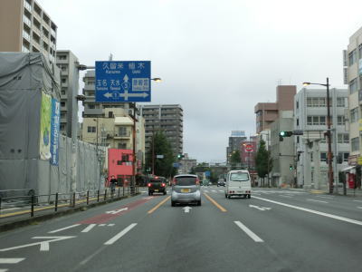 | 熊本r337浄行寺交差点で左端車線が左折専用車線になり、時間限定のバス専用車線区間も終わる。熊本電鉄藤崎線と並走している4車線道路を走っていると緩やかな左カーブで熊本r37室室交差点を通過して熊本市北区に入る。 | ||