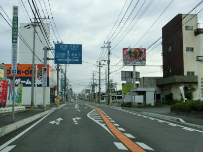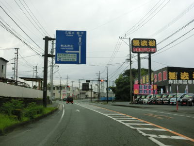 | 対面2車線道路を走っていると楠野町交差点を大きく左にカーブしながら通過する。さらに少し走ると熊本r113との交差点を通過する。r113は400m弱先でR3植木バイパスの開通済み区間の南端に接続している。 | ||